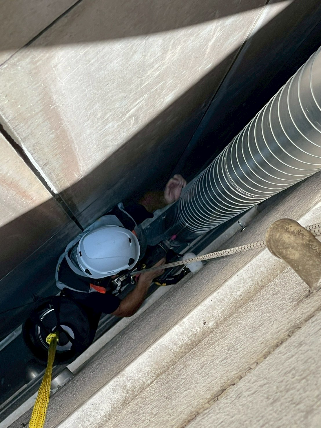 ロープを使用して作業員がアクセスすることで、